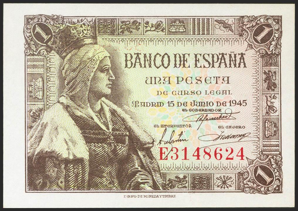 1 Peseta. 15 de Junio de 1945. Serie E. (Edifil 2021: 448a). Apresto original. SC.