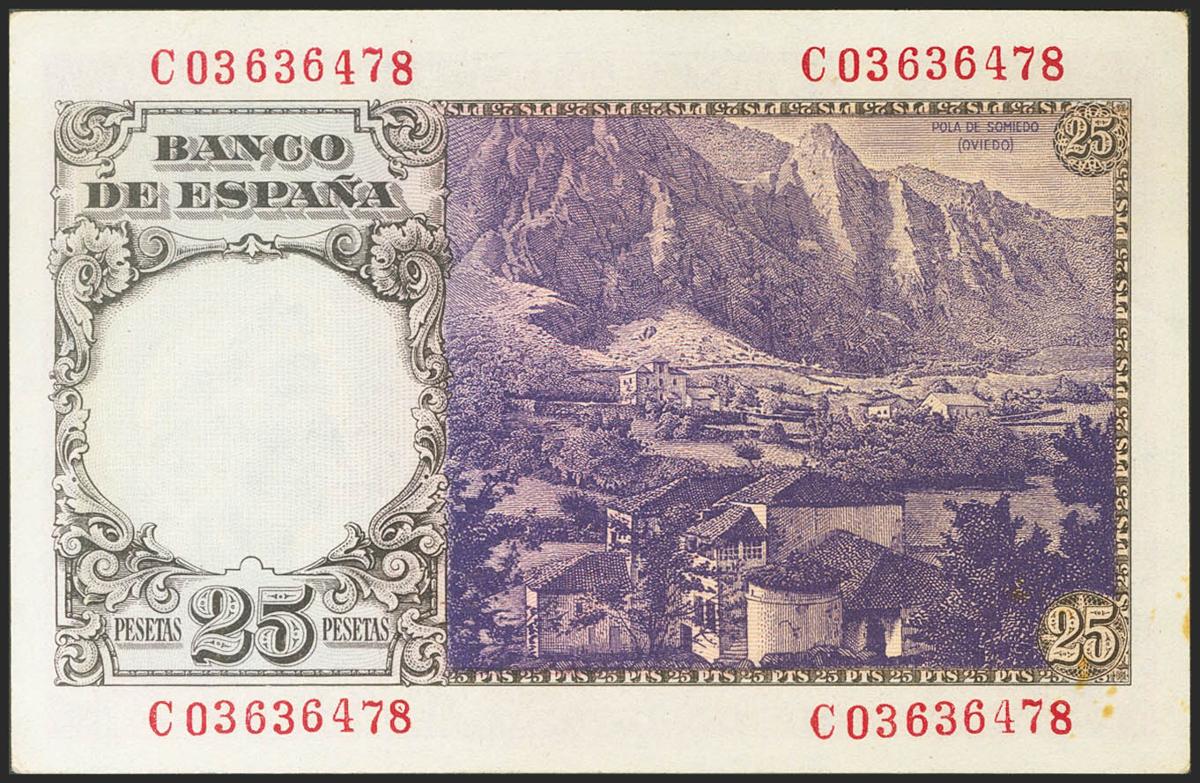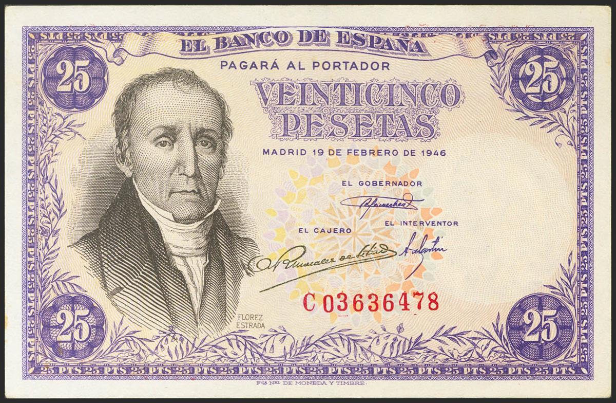 25 Pesetas. 19 de Febrero de 1946. Serie C. (Edifil 2021: 450a). Apresto original. SC-.
