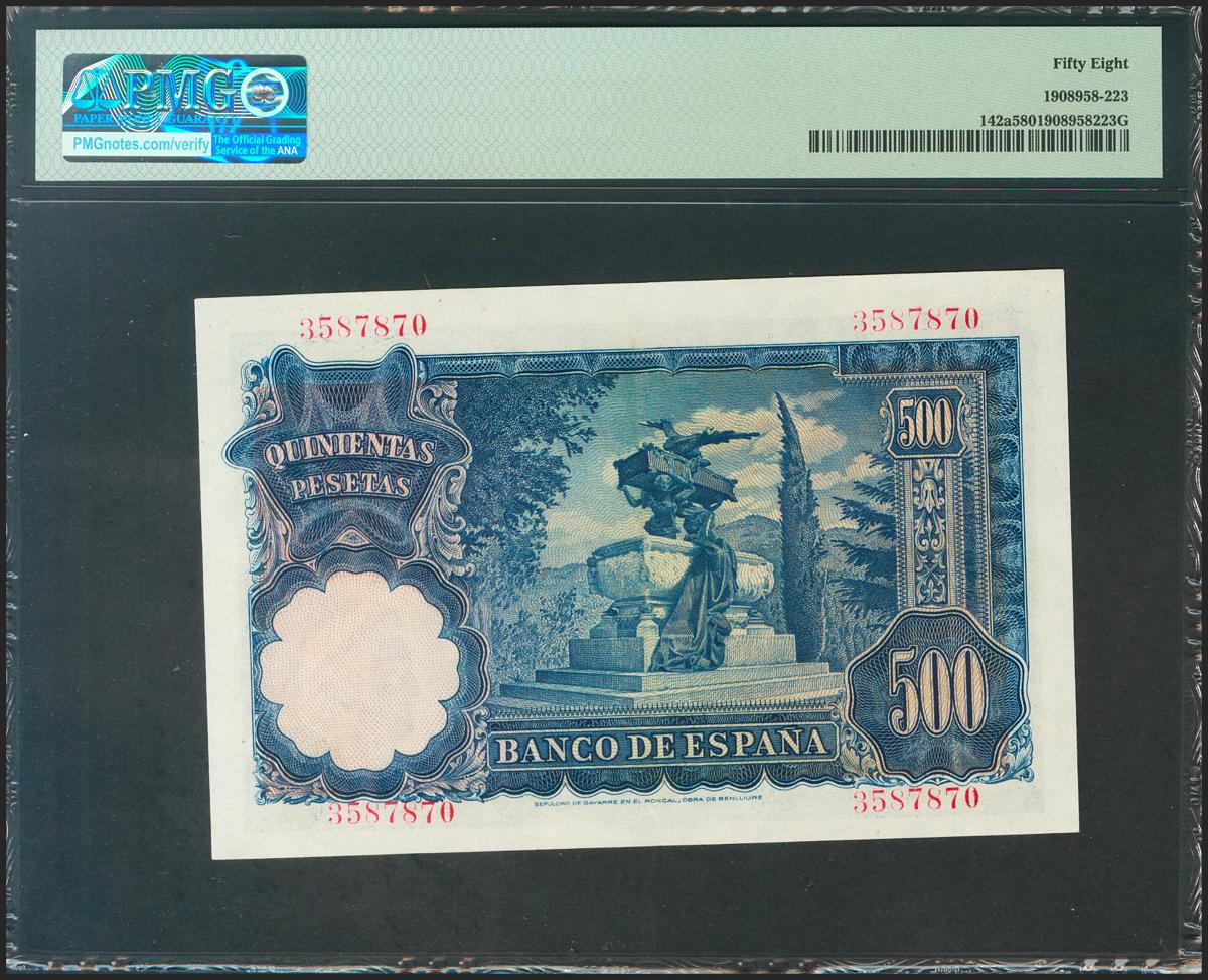 500 Pesetas. 15 de Noviembre de 1951. Sin serie. (Edifil 2021: 460, Pick: 142a). Inusual en esta calidad. EBC++. Encapsulado PMG58.