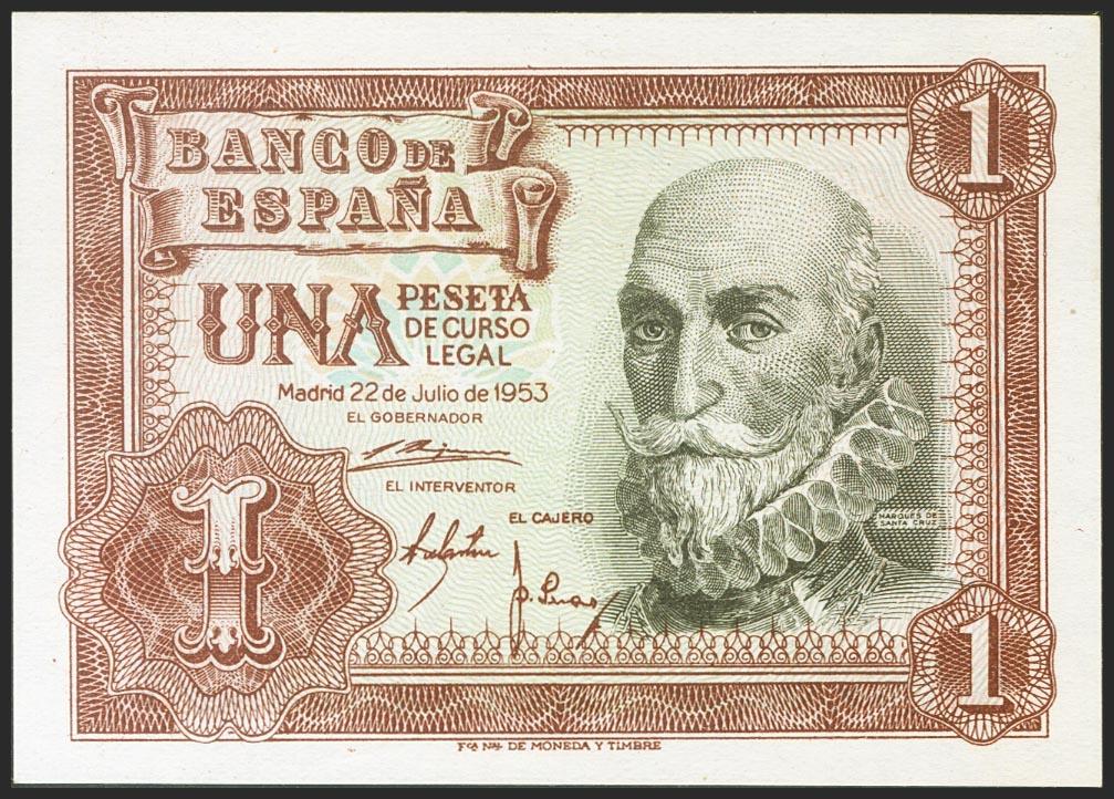 1 Peseta. 22 de Julio de 1953. Serie H. (Edifil 2021: 465a). Apresto original. SC.