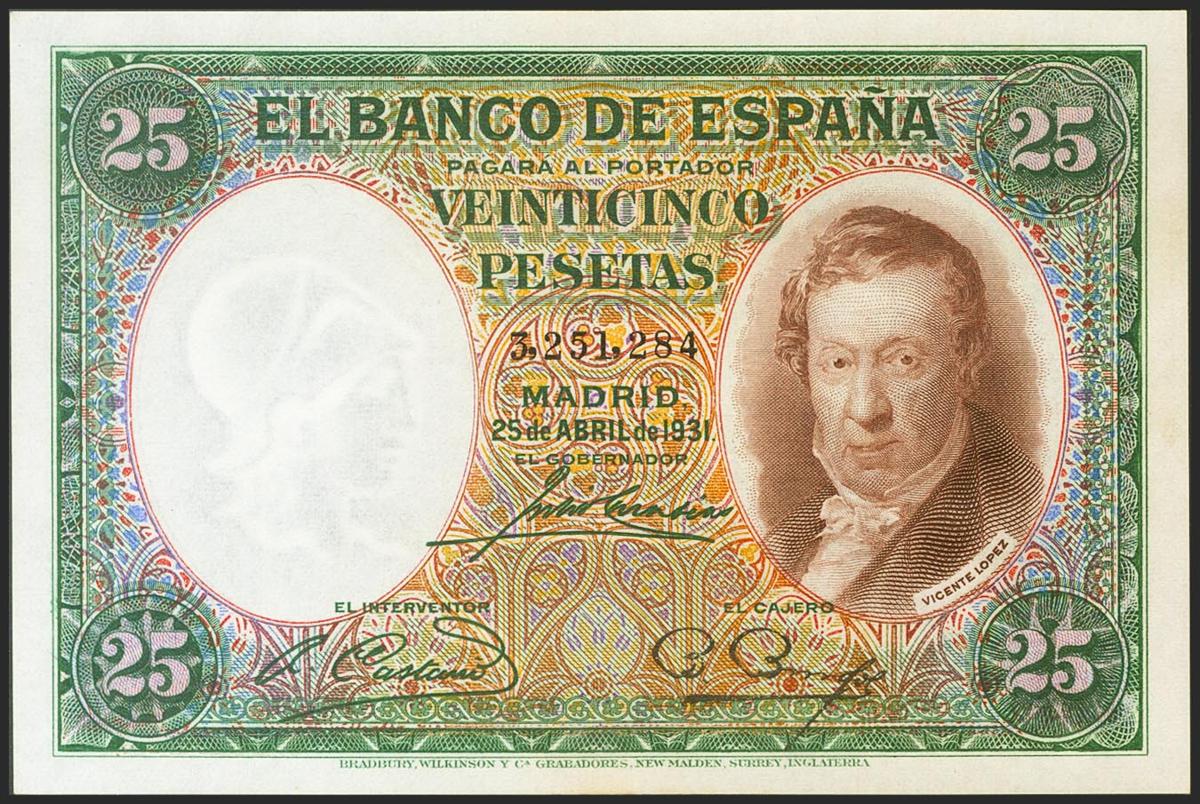 25 Pesetas. 25 de Abril de 1931. Sin serie. (Edifil 2021: 358). Apresto original. SC.