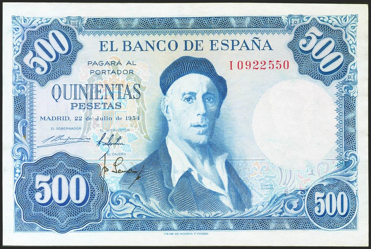 500 Pesetas. 22 de Julio de 1954. Serie I. (Edifil 2021: 468b). Apresto original. SC-.
