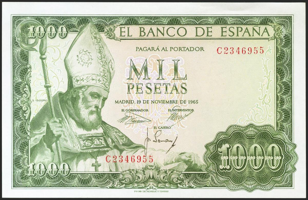 1000 Pesetas. 19 de Noviembre de 1965. Serie C. (Edifil 2021: 471b). Apresto original. SC.