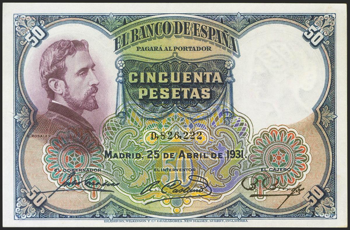 50 Pesetas. 25 de Abril de 1931. Sin serie. (Edifil 2021: 359). Conserva gran parte del apresto original. EBC+.