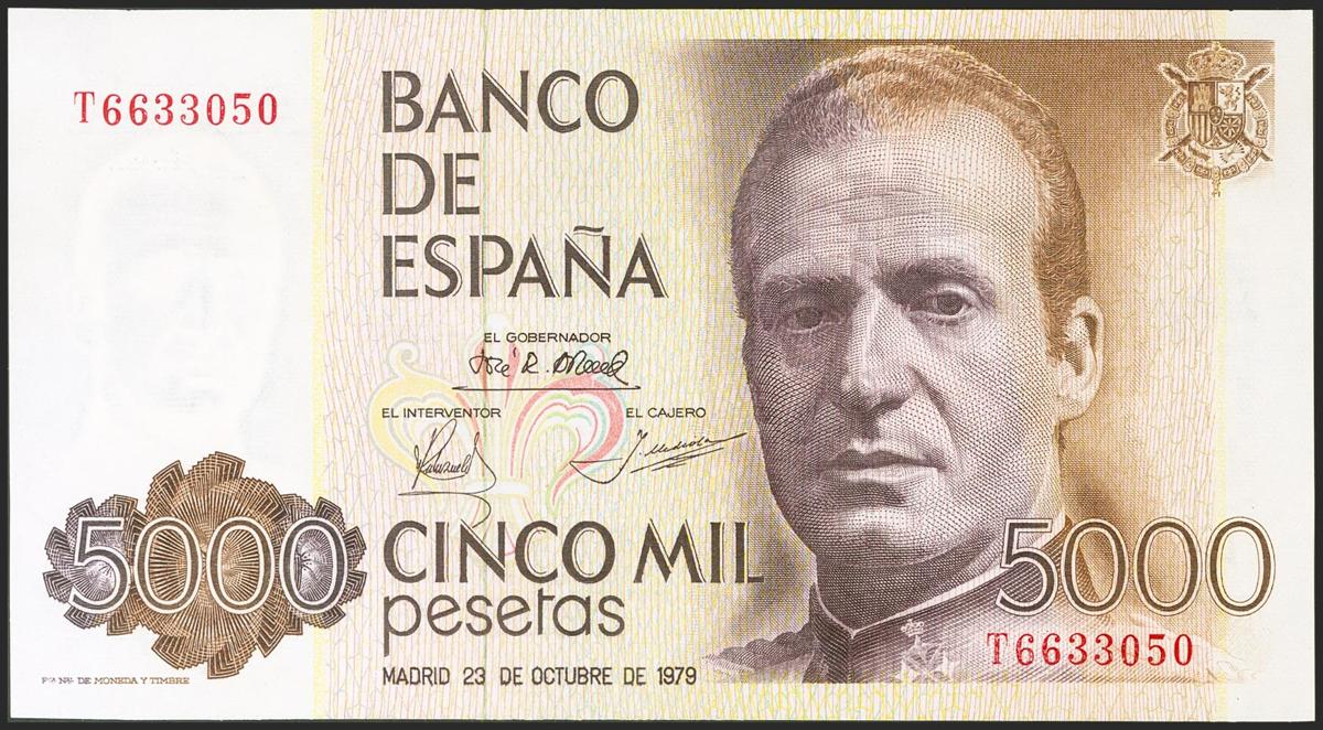 5000 Pesetas. 23 de Octubre de 1979. Serie T. (Edifil 2021: 478a). SC.