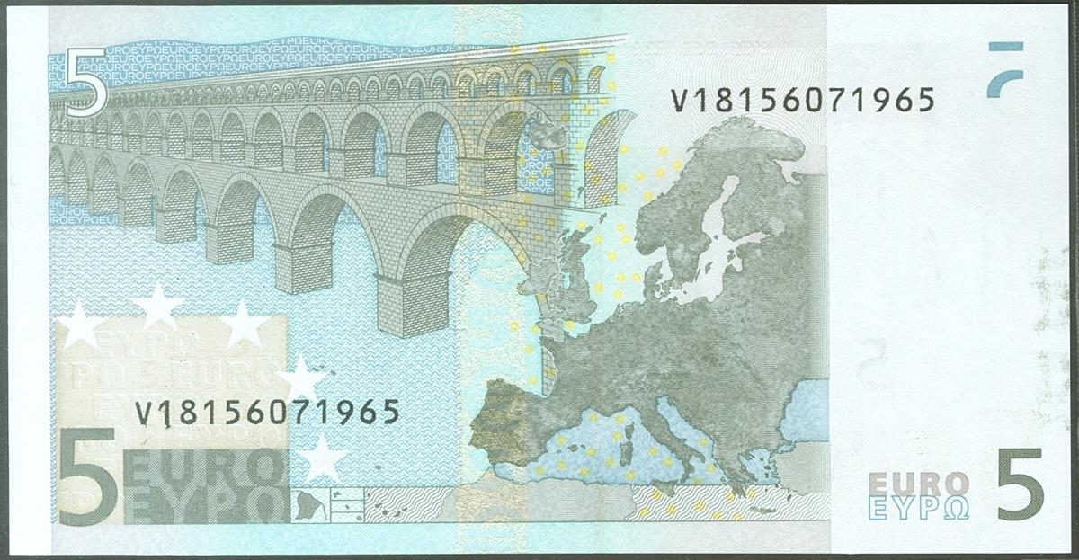 5 Euros. 1 de Enero de 2002. Firma Trichet. Serie V (España). (Edifil 2021: 486A). SC.