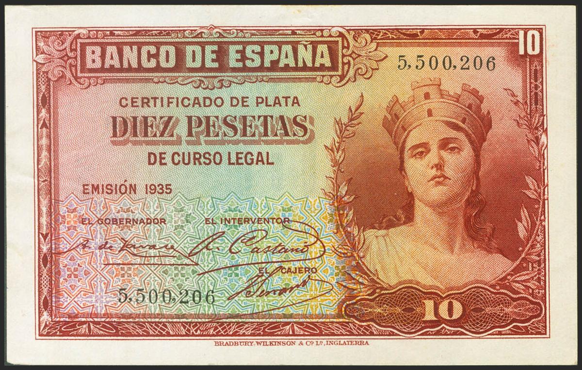 10 Pesetas. 1935. Certificado de Plata. Sin serie. (Edifil 2021: 364). Apresto original. EBC.