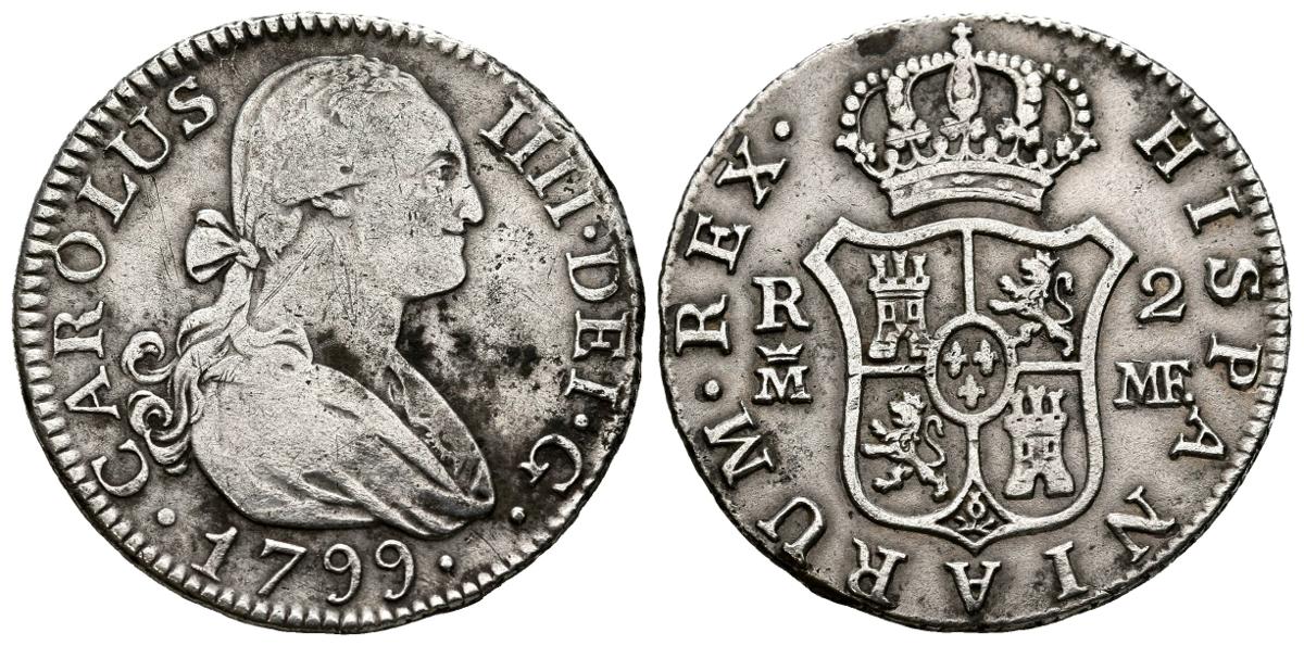 CARLOS IV (1788-1808). 2 Reales (Ar. 5,76/26mm). 1799. Madrid MF. (Cal-2019-607). MBC/MBC+.