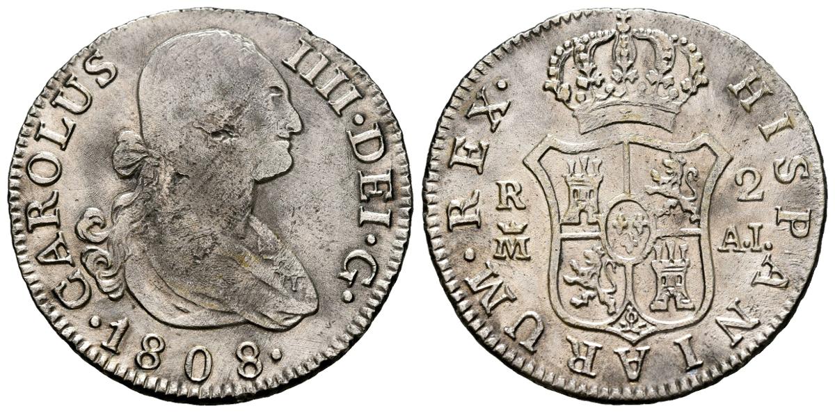 CARLOS IV (1788-1808). 2 Reales. (Ar. 5,76g/26mm). 1808. Madrid AI. (Cal-2019-619). MBC-.