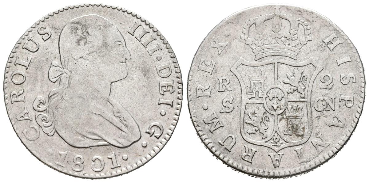 CARLOS IV (1788-1808). 2 Reales (Ar. 5,90g/26mm). 1801. Sevilla CN. (Cal-2019-722). MBC-.