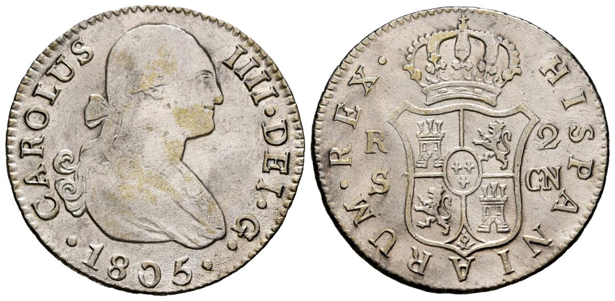 CARLOS IV (1788-1808). 2 Reales. (Ar. 5,70g/26mm). 1805. Sevilla CN. (Cal-2019-725). MBC-.