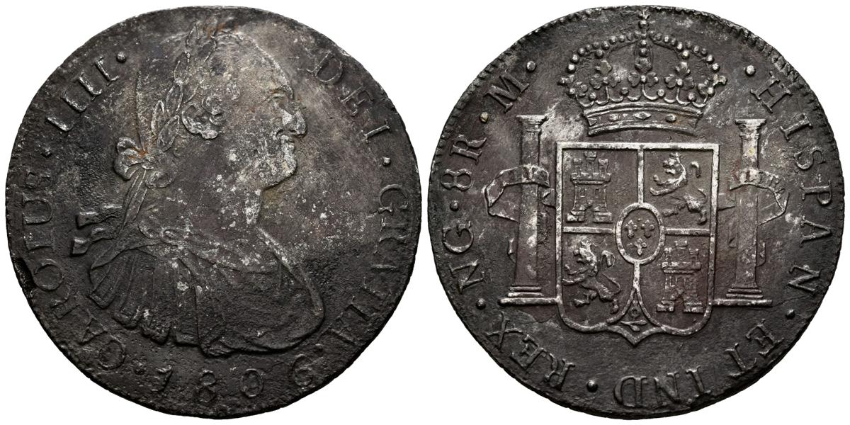CARLOS IV (1788-1808). 8 Reales. (Ar. 25,92g/38mm). 1806. Guatemala M. (Cal-2019-901). BC+/MBC-. Oxidaciones marinas. Escasa.