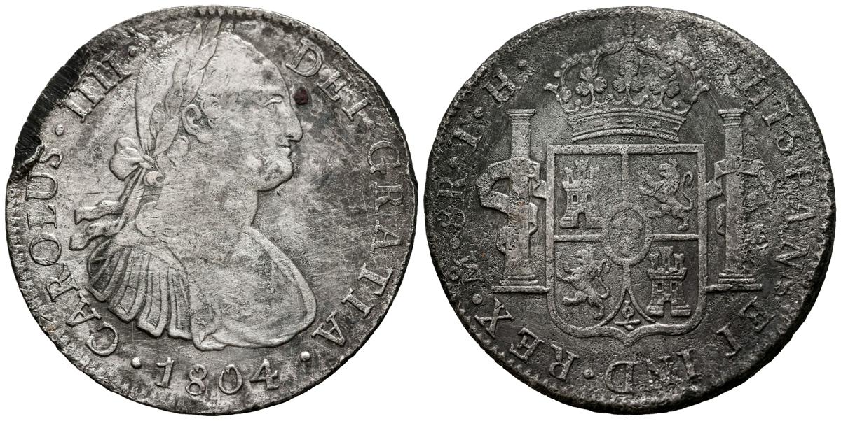 CARLOS IV (1788-1808). 8 Reales. (Ar. 25,31g/39mm). 1804. México TH. (Cal-2019-980). MBC-. Oxidaciones limpiadas.