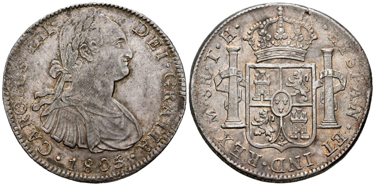 CARLOS IV (1788-1808). 8 Reales. (Ar. 26.79g/40mm). 1805. Mexico TH. (Cal-2019-983). MBC+/EBC-. Brillo original.