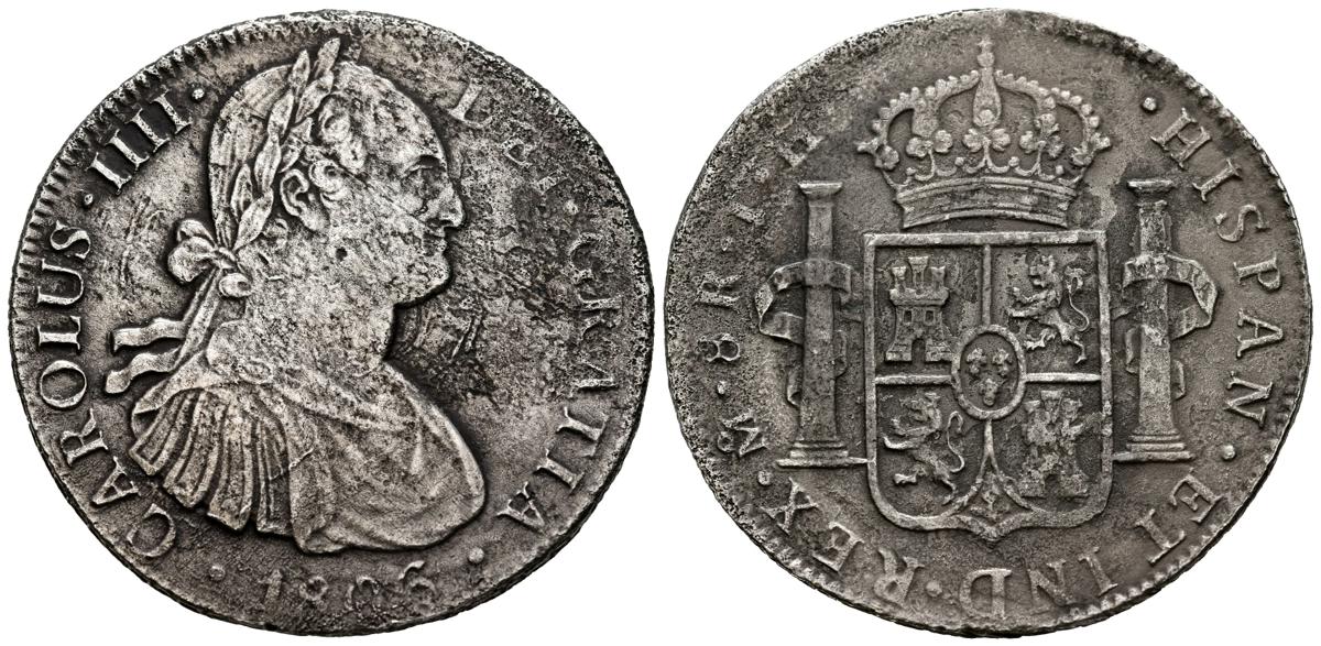 CARLOS IV (1788-1808). 8 Reales. (Ar. 24,93g/39mm). 1806. México TH. (Cal-2019-984). MBC-. Oxidaciones limpiadas.