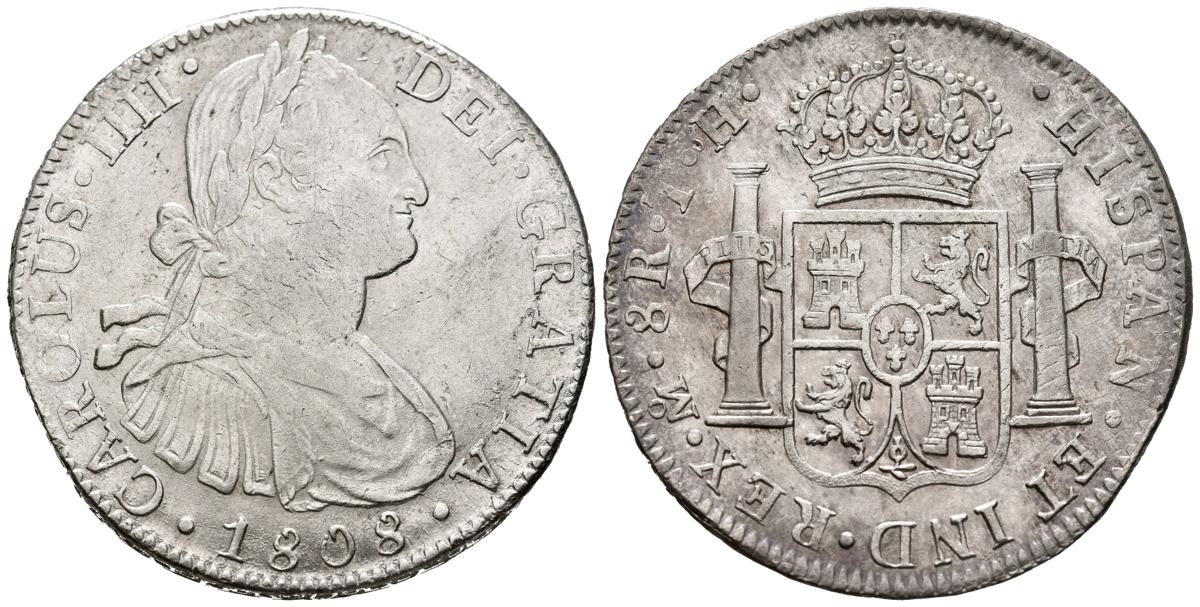 CARLOS IV (1788-1808). 8 Reales. (Ar. 26,87g/39mm). 1808. Mexico TH. (Cal-2019-988). EBC/EBC+. Brillo original. Precioso ejemplar.
