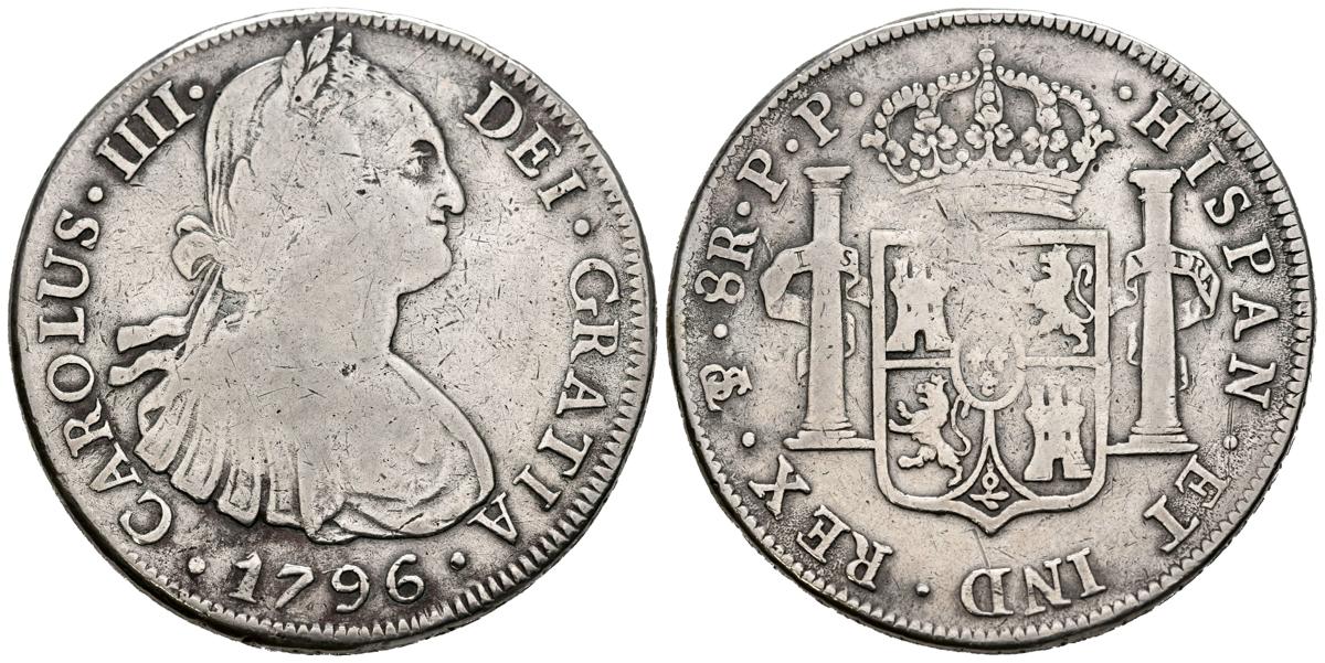 CARLOS IV (1788-1808). 8 Reales. (Ar. 26,56g/40mm). 1796. Potosí PP. (Cal-2019-1000). BC+.