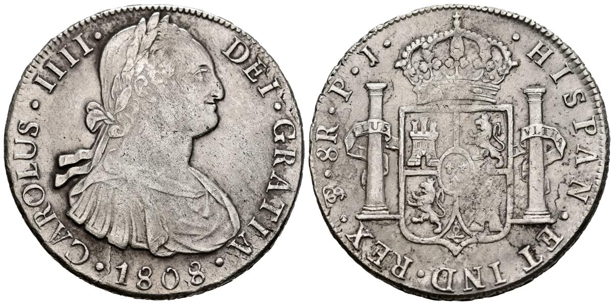 CARLOS IV (1788-1808). 8 Reales. (Ar. 27.09g/39mm). 1808. Potosí PJ. (Cal-2019-1014). MBC.