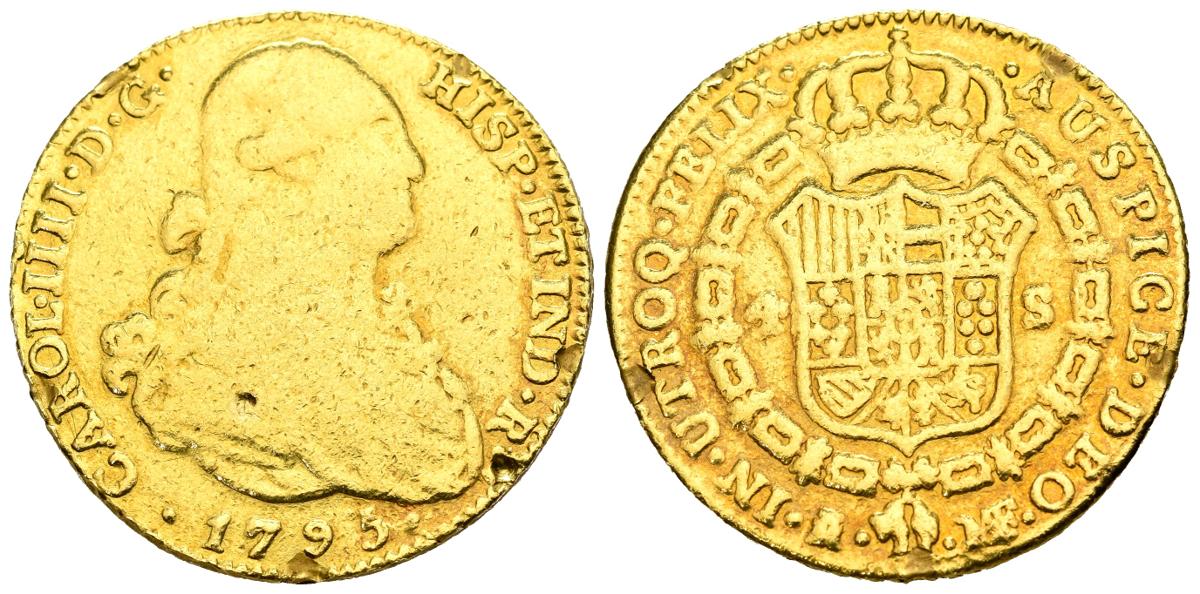 CARLOS IV (1788-1808). 4 Escudos. (Au. 13,35g/29mm). 1795. Madrid MF. (Cal-2019-1478). RC. Usada como joya.