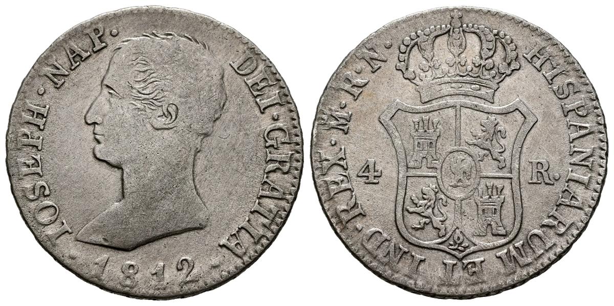 JOSÉ NAPOLEÓN (1808-1813). 4 Reales (Ar. 5,76g/26mm). 1812. Madrid RN. (Cal-2019-21). MBC+. Bonito ejemplar.
