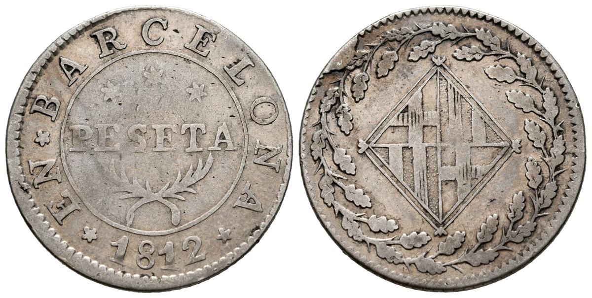 CATALUÑA NAPOLEÓNICA (1808-1814). 1 Peseta. (Ar. 5,53g/26mm). 1812. Barcelona. (Cal-2019-36). MBC. Escasa.