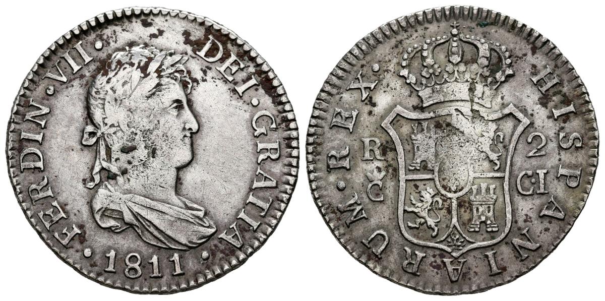 FERNANDO VII (1808-1833). 2 Reales. (Ar. 5,72g/27mm). 1811. Cádiz CI. (Cal-2019-726). MBC-. Oxidaciones.