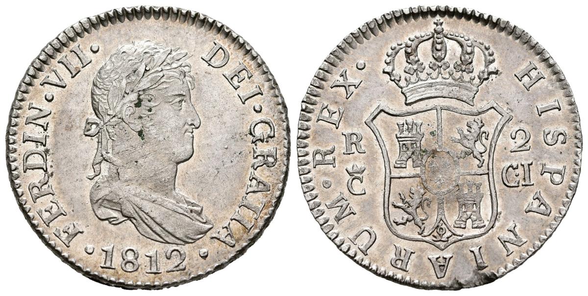 FERNANDO VII (1808-1833). 2 Reales. (Ar. 5,88g/26mm). 1812. Cádiz CI. (Cal-2019-727). EBC+. Defecto de acuñación en canto. Brillo original.