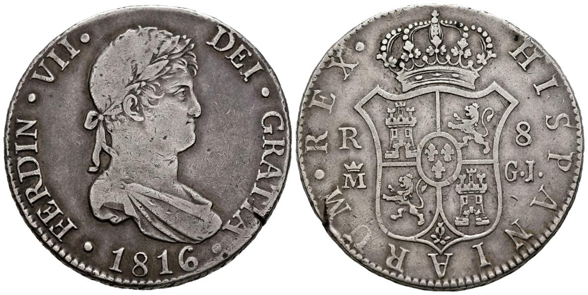 FERNANDO VII (1808-1833). 8 Reales. (Ar. 26,82g/39mm). 1816. Madrid GJ. (Cal-2019-1270). MBC.