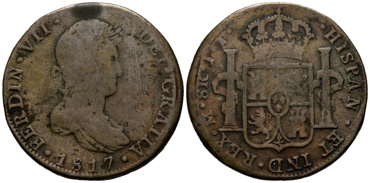 FERNANDO VII (1808-1833). 8 Reales. (Ae. 24,40g /40mm). 1817. Mexico JJ. (Cal-2019-1332). Falsa de época. BC+. Interesante.