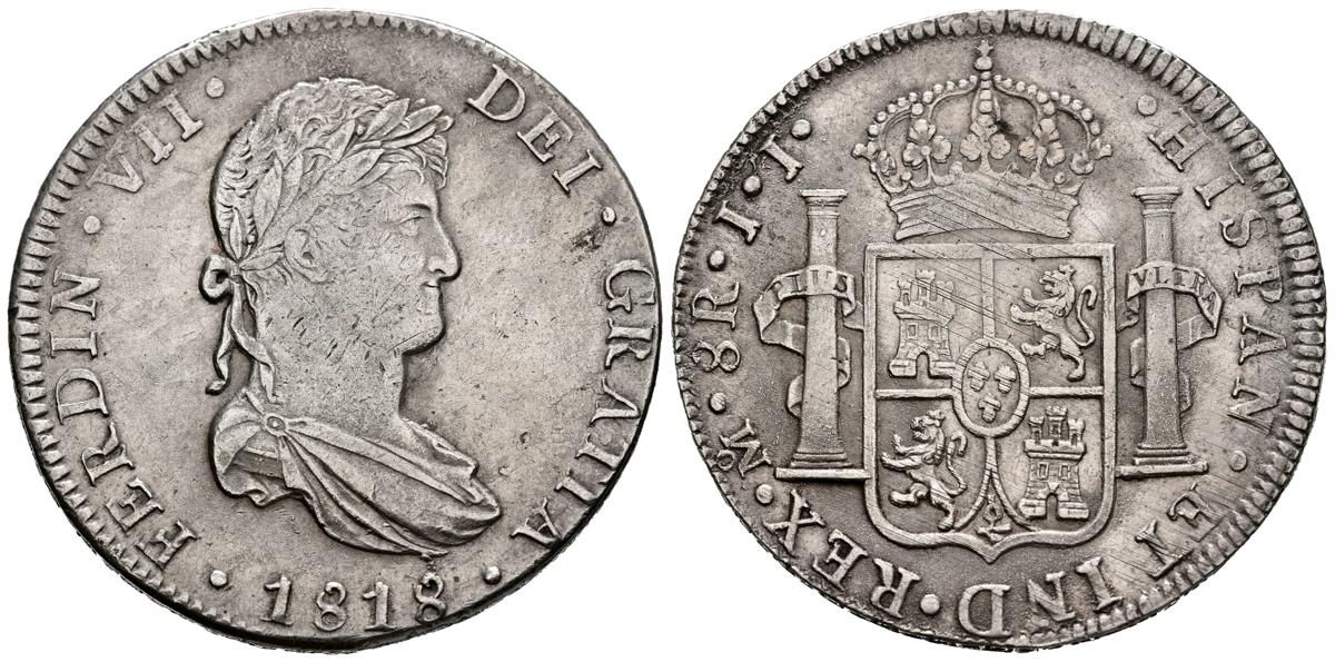 FERNANDO VII (1808-1833). 8 Reales. (Ar. 26,93g/40mm). 1818. México JJ. (Cal-2019-1333). MBC.