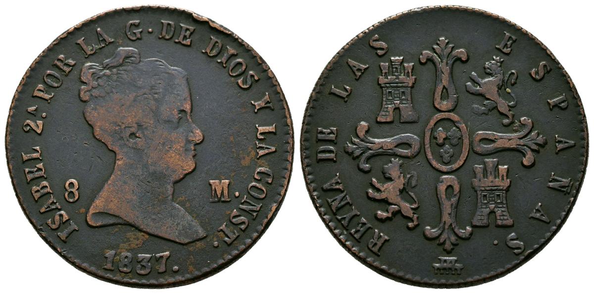 ISABEL II (1833-1868). 8 Maravedís. (Ae. 10,44g/18mm). 1837. Segovia. (Cal-2019-123). BC+.