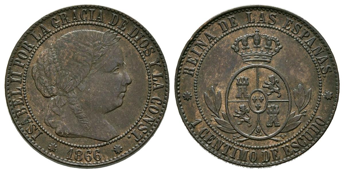 ISABEL II (1833-1868). 1 Céntimo de Escudo. (Ae. 2,61/18mm). 1866. Barcelona. Sin OM. (Cal-2019-213). MBC+.