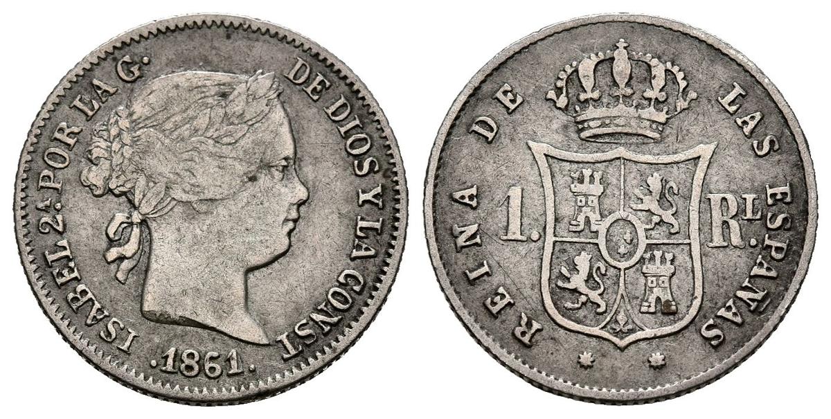 ISABEL II (1833-1868). 1 Real. (Ar. 1,23g/15mm). 1861. Barcelona. (Cal-2019-287). MBC.