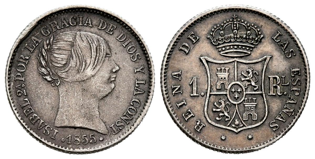ISABEL II (1833-1868). 1 Real. (Ar. 1,41g/30mm). 1855. Sevilla. (Cal-2019-325). Falsa de época. MBC+.