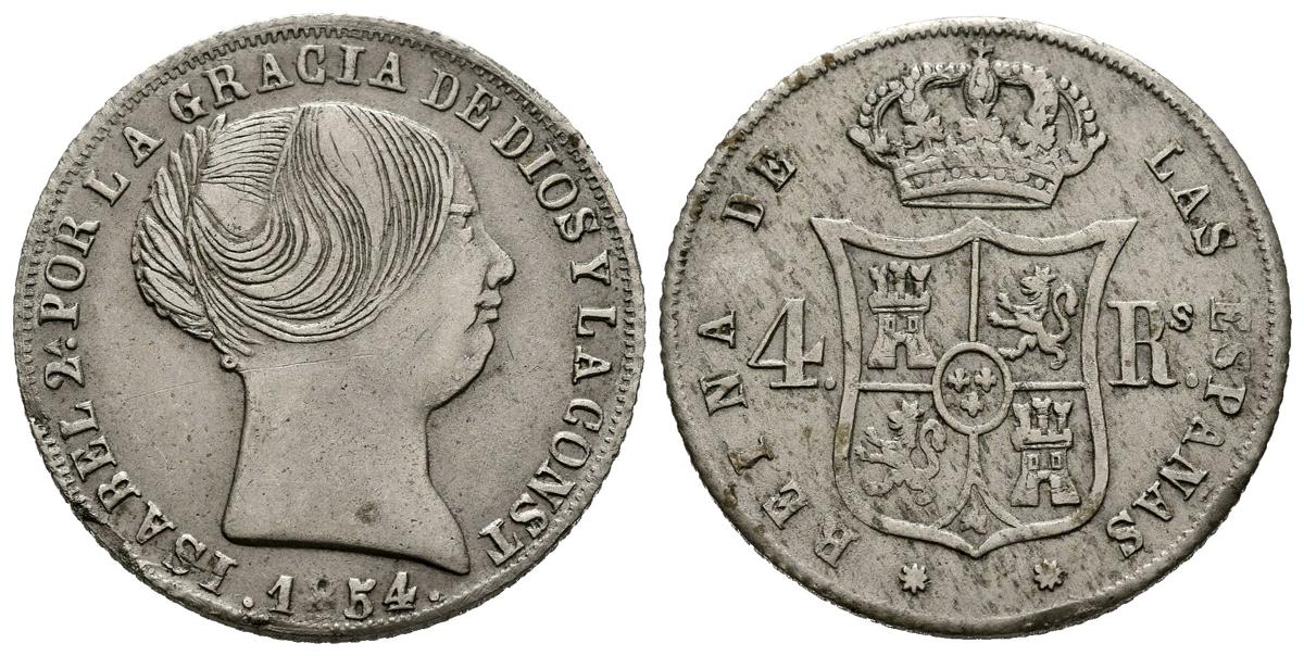 ISABEL II (1833-1868). 4 Reales. (Metal Blanco. 5,22g/23mm). 1854. Barcelona. (Cal-2019-427). Falsa de época. MBC+.