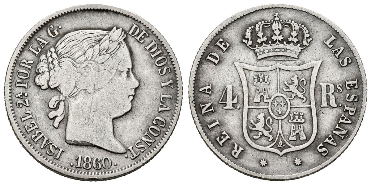 ISABEL II (1833-1868). 4 Reales. (Ar. 5,09g/23mm). 1860. Barcelona. (Cal-2019-434). MBC-/MBC.