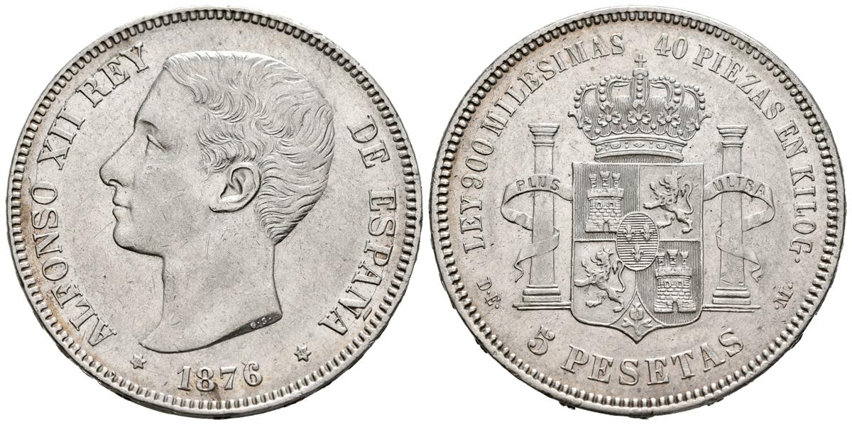 ALFONSO XII (1874-1885). 5 Pesetas. (Ar. 24,77g/37mm). 1876 *18-76. Madrid DEM. (Cal-2019-37). EBC. Restos de brillo original. Marquitas.