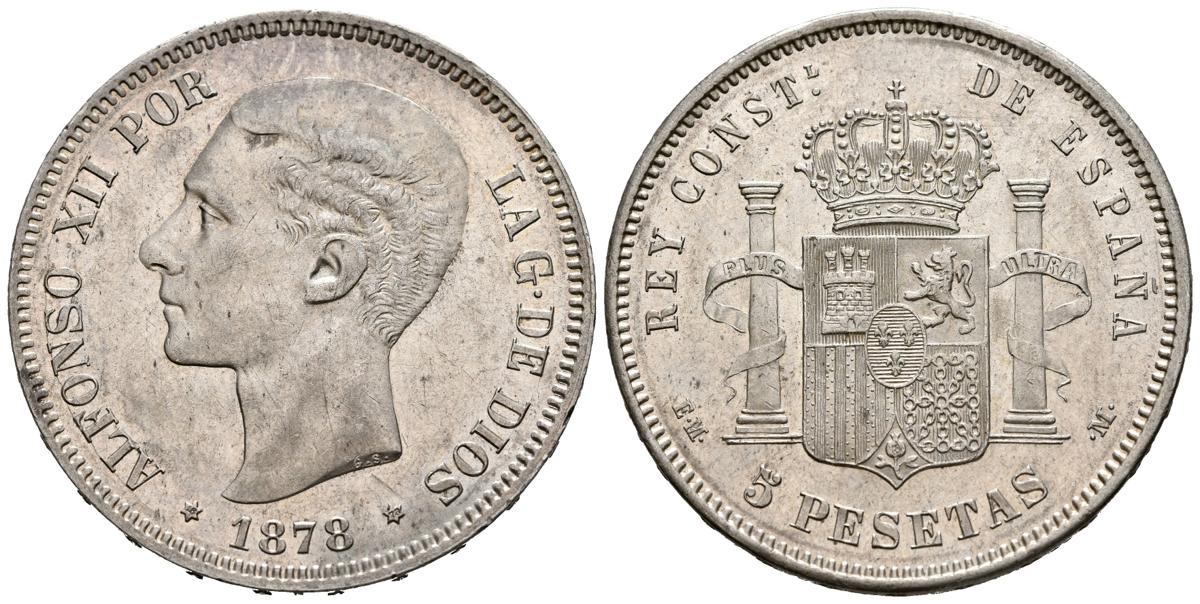 ALFONSO XII (1874-1885). 5 Pesetas. (Ar. 25,10g/37mm). 1878 *18-78. Madrid EMM. (Cal-2019-41). EBC. Brillo original. Magnífica pieza.