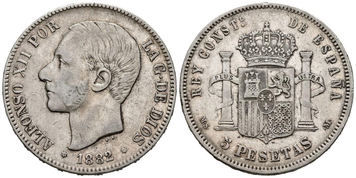 ALFONSO XII (1874-1885). 5 Pesetas. (Ar. 24,90g/37mm). 1882 *18-82. Madrid MSM. (Cal-2019-51). MBC-.