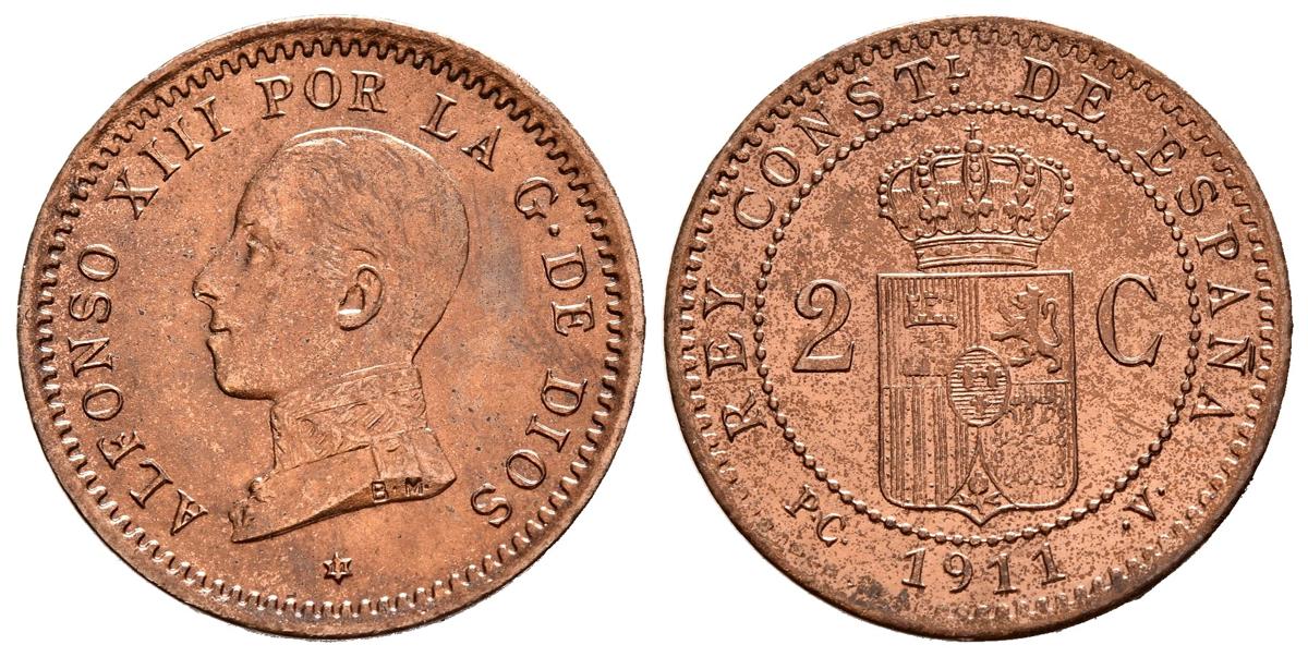 ALFONSO XIII (1885-1931). 2 Céntimos. (Ae. 1,89g/20mm). 1911 *11. Madrid PCV. (Cal-2019-13). EBC+.