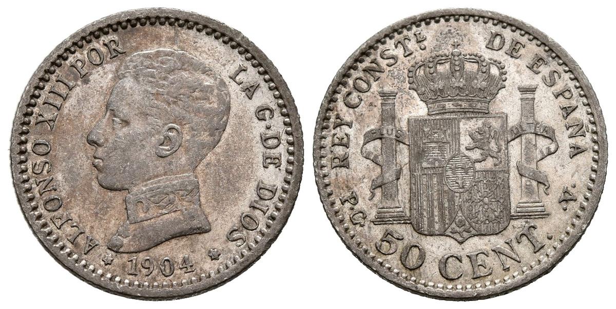ALFONSO XII (1874-1885). 50 Céntimos (Ar. 2,50g/18mm). 1904 *1-0. Madrid PCV. (Cal-2019-47). EBC-/EBC. Preciosa pátina.