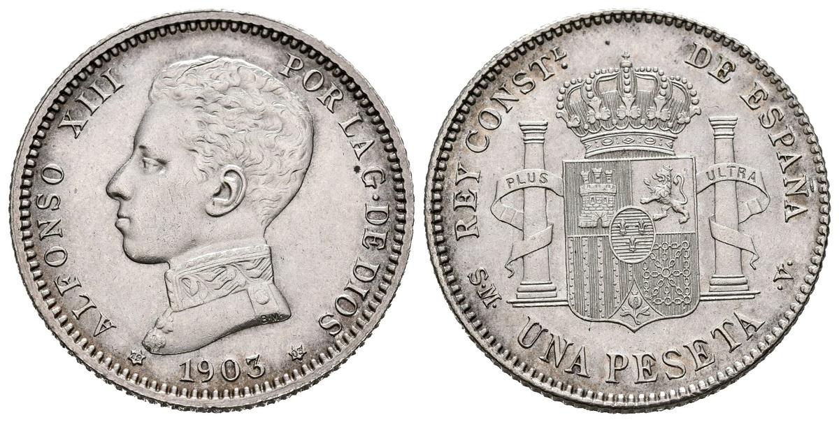 ALFONSO XIII (1885-1931). 1 Peseta. (Ar. 5,05g/23mm). 1903 *19-03. Madrid SMV. (Cal-2019-67). SC-.