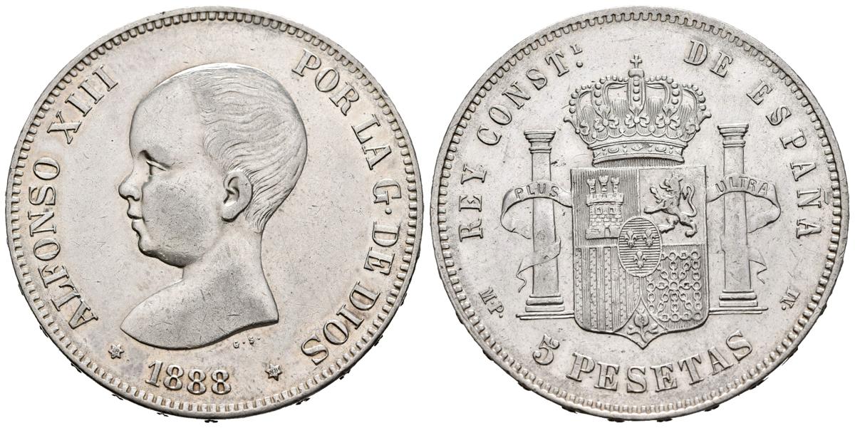 ALFONSO XIII (1885-1931). 5 Pesetas. (Ar. 25,03g/37mm). 1888 *18-88. Madrid MPM. (Cal-2019-92). EBC/EBC-. Rayitas.