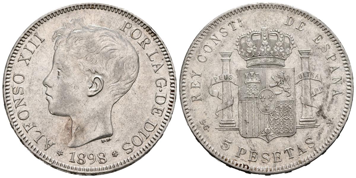 ALFONSO XIII (1885-1931). 5 Pesetas. (Ar. 24,91g/37mm). 1898 *18-98. Madrid SGV. (Cal-2019-109). EBC-.