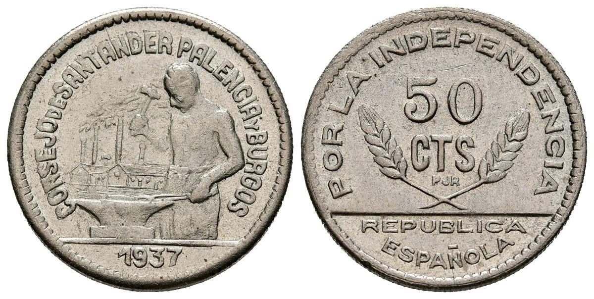 SANTANDER, PALENCIA y BURGOS. 50 Céntimos. (Cu-Ni. 2,72g/19mm). 1937. PJR. (Cal-2019-34). MBC+.