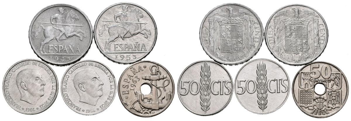 ESTADO ESPAÑOL (1936-1975). Bonito conjunto formado por 5 monedas de 10 y 50 céntimos, todas diferentes y en un alto nivel de conservación general. A EXAMINAR.