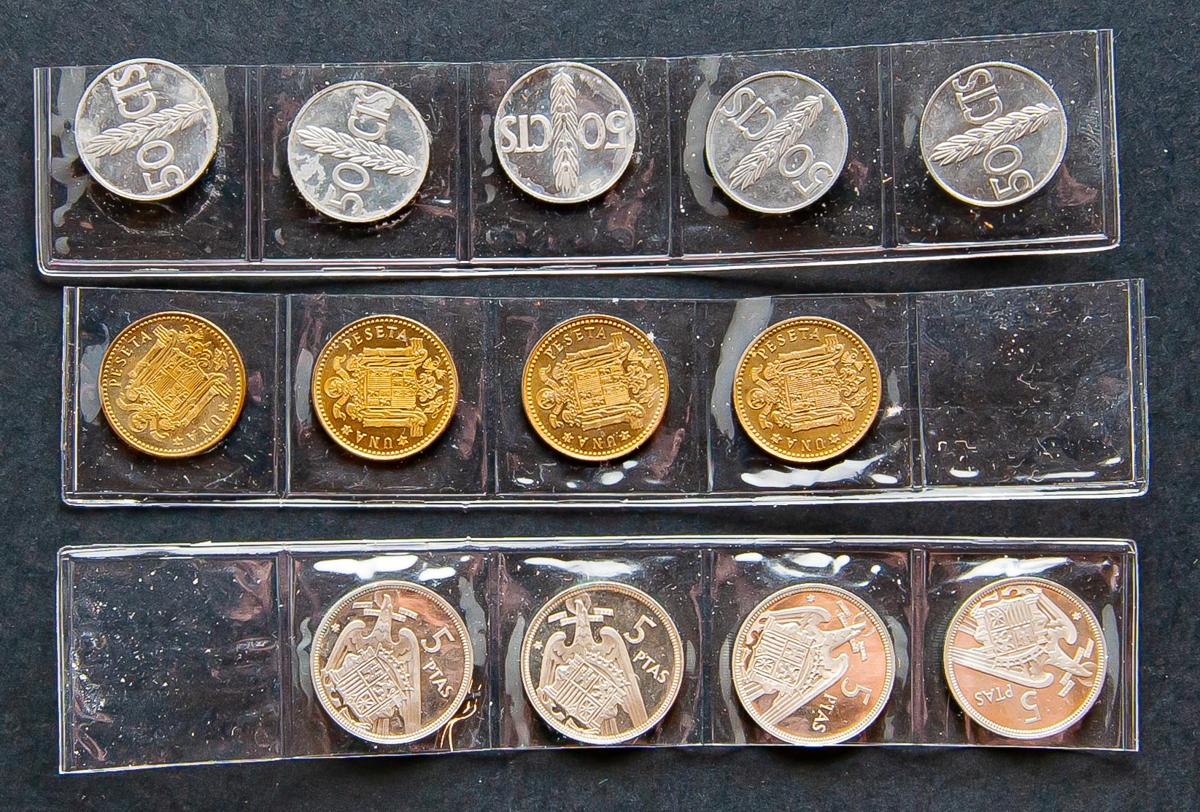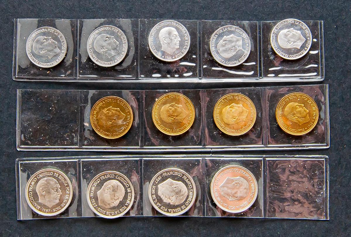 ESTADO ESPAÑOL (1936-1975). Conjunto formado por 13 monedasde los módulos de 50 céntimos de 1966 (*67,71,72,73 y 75), 1 Peseta de 1966 (*72,73,74 y 75) y 5 Pesetas de 1957 (*72,73,74 y 75). Todas las piezas SC. A EXAMINAR.
