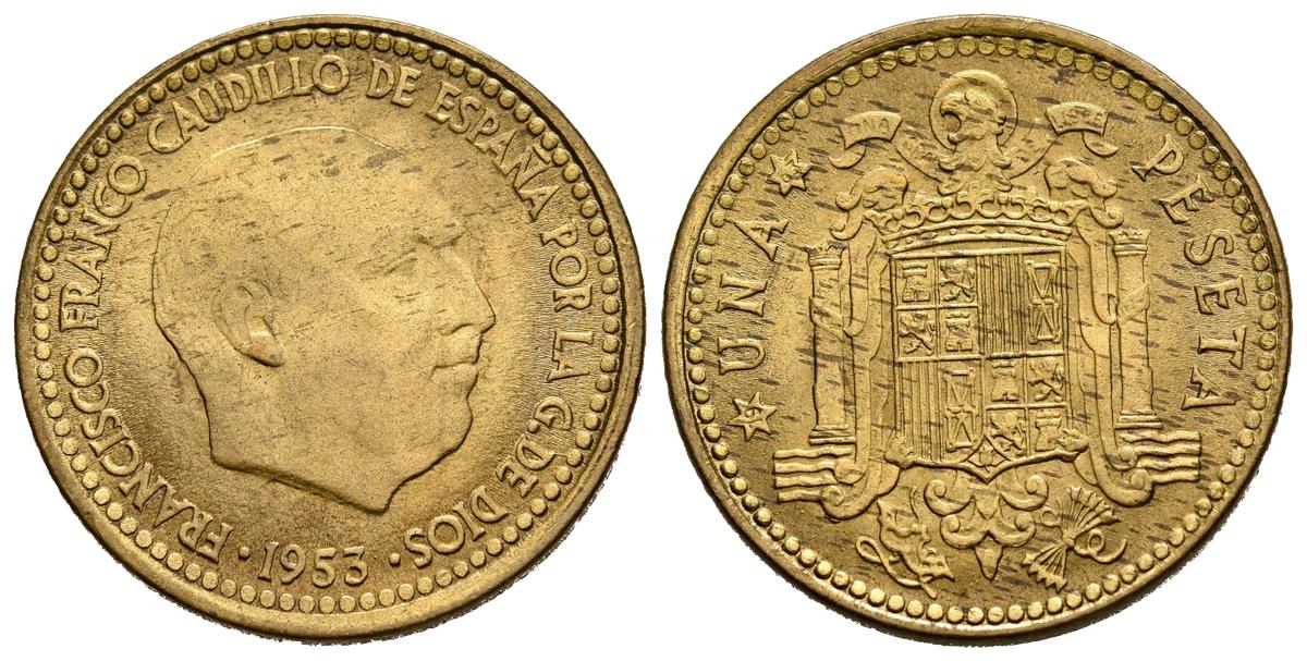 ESTADO ESPAÑOL (1936-1975). 1 Peseta. (Al-Cu. 3,43g/20mm). 1953 *19-63. Madrid. (Cal-2019-63). SC-.