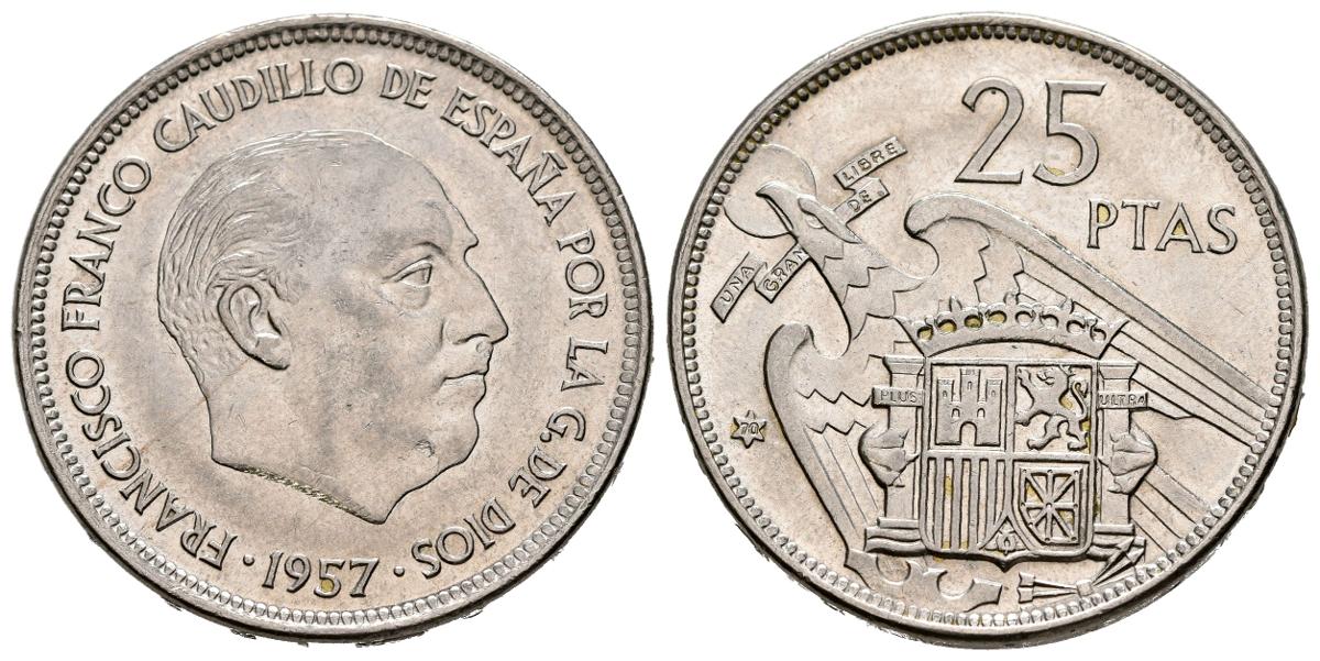 ESTADO ESPAÑOL (1936-1975). 25 Pesetas (Ni. 8,62g/27mm). 1957 *70. Madrid. (Cal-2019-125). SC.