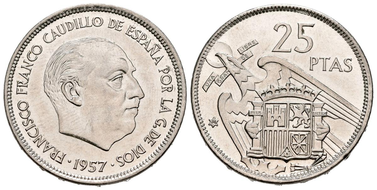 ESTADO ESPAÑOL (1936-1975). 25 Pesetas. (Ni. 8,50g/27mm). 1957 *74. Madrid. (Cal-2019-129). SC.